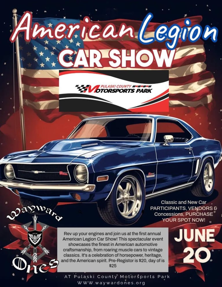 Wayward Ones has partnered with The American Legion Post 58 to raise as much as possible to help our Veteran Community. We will have full concessions, vendors, and only the best cars in the area.